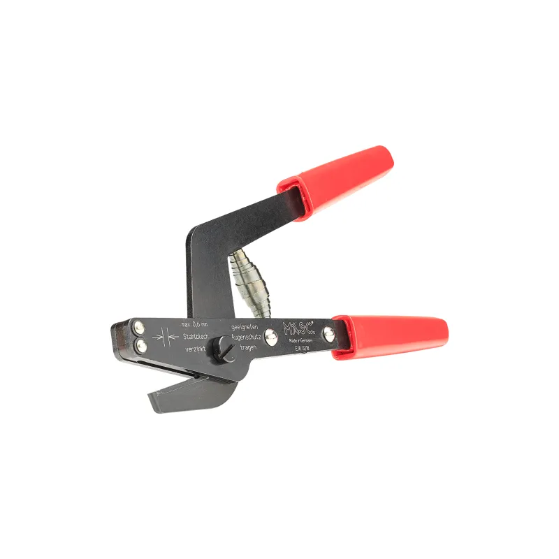 Nová verze drážkovacích nůžek se středovým spojem. Díky speciálním čelistem stříhají průběžné střihy libovolné délky se zaobleným koncem a zamezí tak dalšímu natržení plechu při následném falcování.