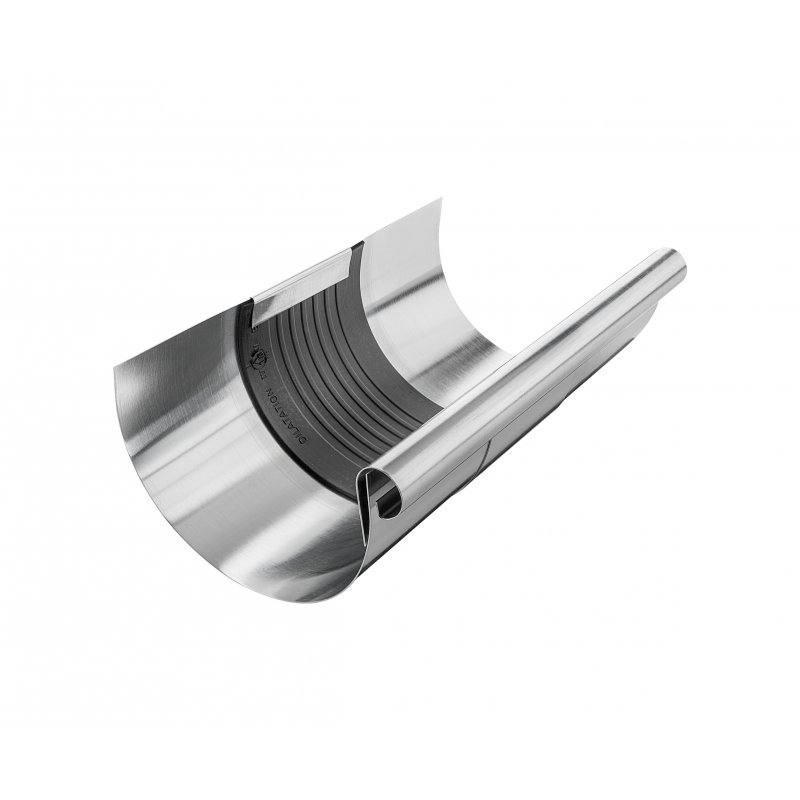 Naše kvalitní dilatační žlaby si s ní poradí. Klasický půlkruhový žlab do sestavy okapového systému.
