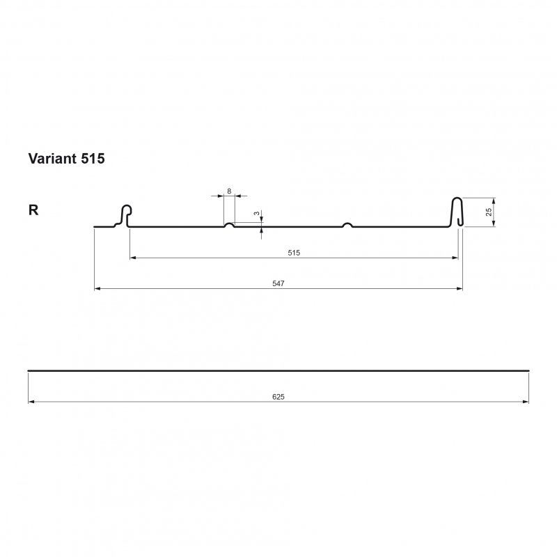 Profil R - doplněný o zpevňující rádius, který zlepšuje optickou a pevnostní funkci krytiny.