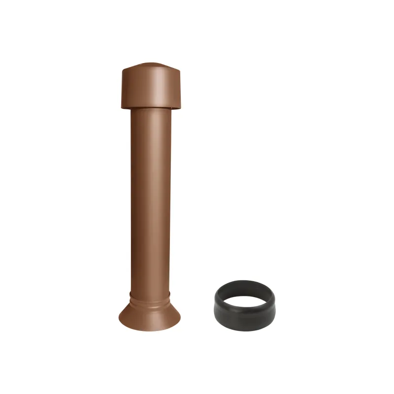 Připojení na standardní PVC roury. EPDM těsnění v černém provedení k utěsnění komína uchyceného v podstavci.
