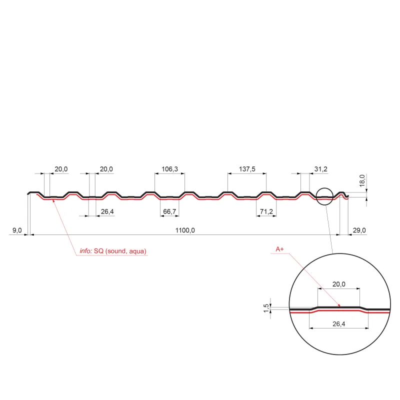 A+ SQ = A/střešní, +/prolis, SQ (antikondenzační a protihlukový filc)