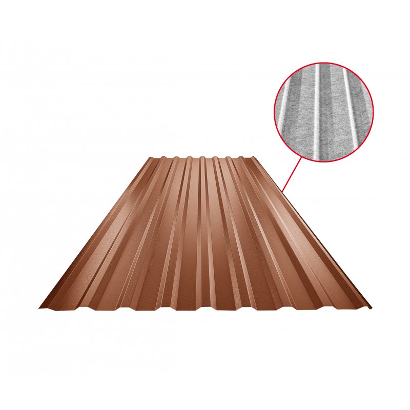 MATT  - Měděno hnědá MATT  -  Obrázek 1Trapéz střešní s prolisem TR 18A SQ (sound – aqua)  - Pozink lakovaný