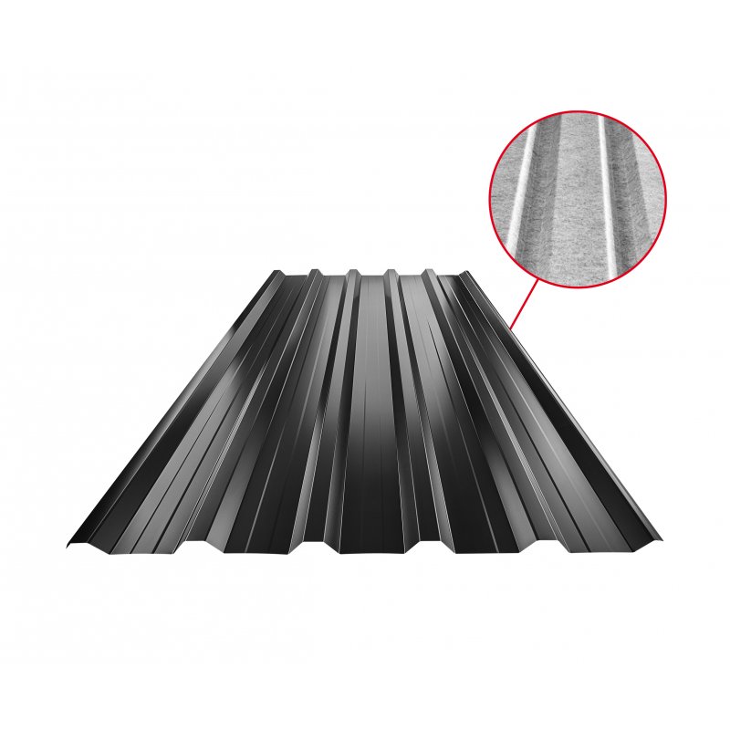 Na spodní straně má SQ antikondenzační a protihlukový filc, který zvyšuje komfort. Tlumí hluk prostředí a zabraňuje šíření kondenzující vody do střešní plochy.